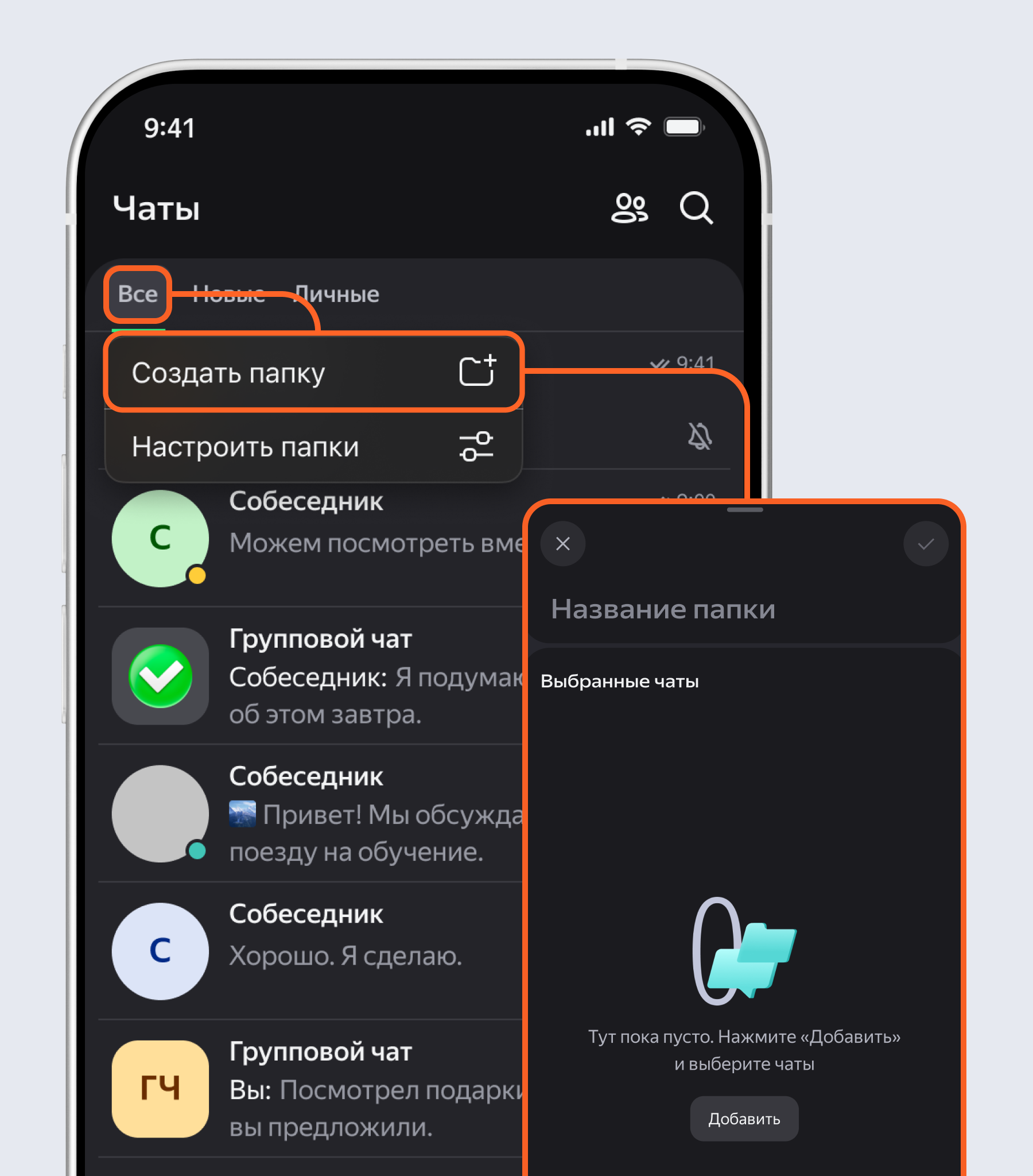 Разложить чаты по папкам