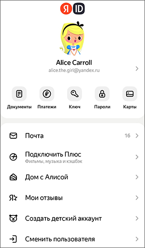 (портрет профиля) — открыть страницу вашего Яндекс ID.